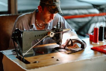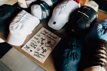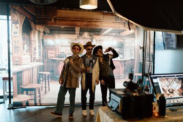 We incorporated marquee letters as a striking stage backdrop and created a welcoming entrance moment. A live embroiderer personalized hats and bandanas with custom stitching and patches, while an old-time photo setup featuring western-themed props and wardrobe allowed attendees to dress up with guidance from a professional stylist.