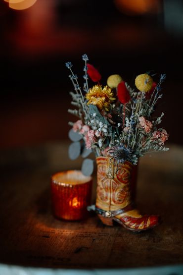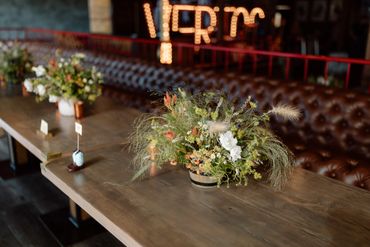 The event came alive with a live country rock band and a line dancing instructor who got everyone moving. To further enhance the space, we added themed floral arrangements and custom signage that tied everything together seamlessly.