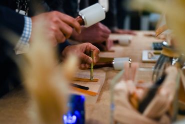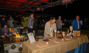 During the day at the Tradeshow, we a Churro Cart made fresh churros for people to enjoy. That evening, people jumped in one of our designated shuttles to head over to Portside Pier. The Party was held at Brigantine and Topsail Restaurants where enhanced the space with decor and entertainment - a Folk Trio and Leather Keychain Station. Toward the end of the evening, guests were surprised with a Drone Show over the San Diego Bay. This drone show was the first-ever drone show over the San Diego Waterfront!