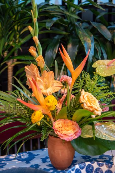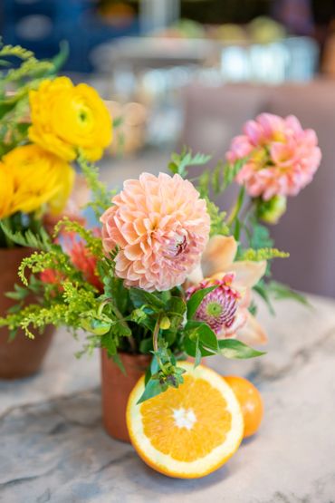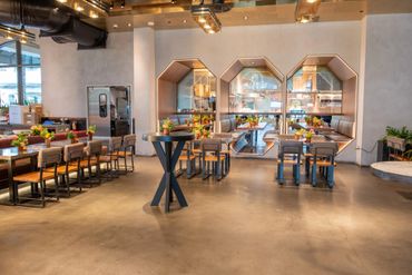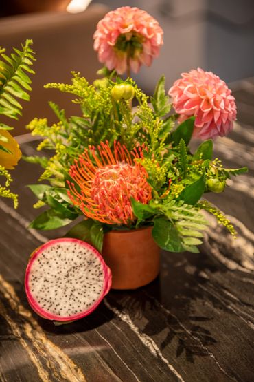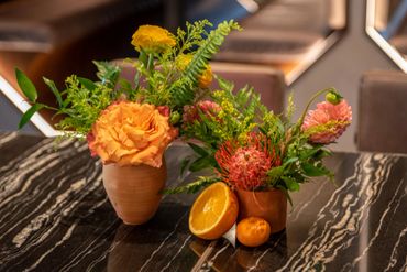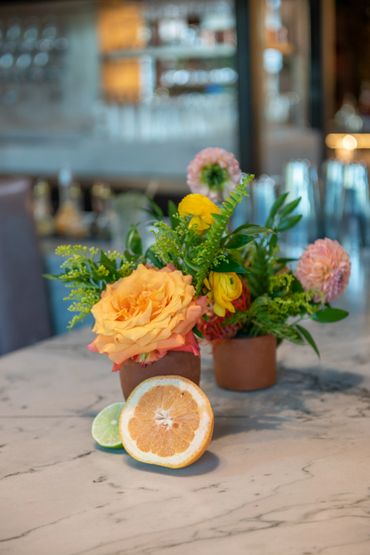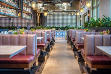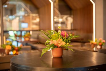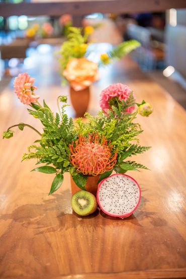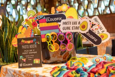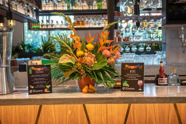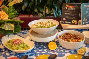 Our client wanted to bring in color and tropical touches into the restaurant. We decorated with bright colorful, Spanish-inspired linen and centerpieces included vibrant florals paired with mixed fruits. This event was all about Puesto's delicious food and drinks. Guests were served tray-passed tacos, ceviche, chips, guacamole, How Hot Can You Go salsa tasting bar, and tres leches dessert. In addition, guests were able to order themed margaritas and enjoy a tequila tasting station.